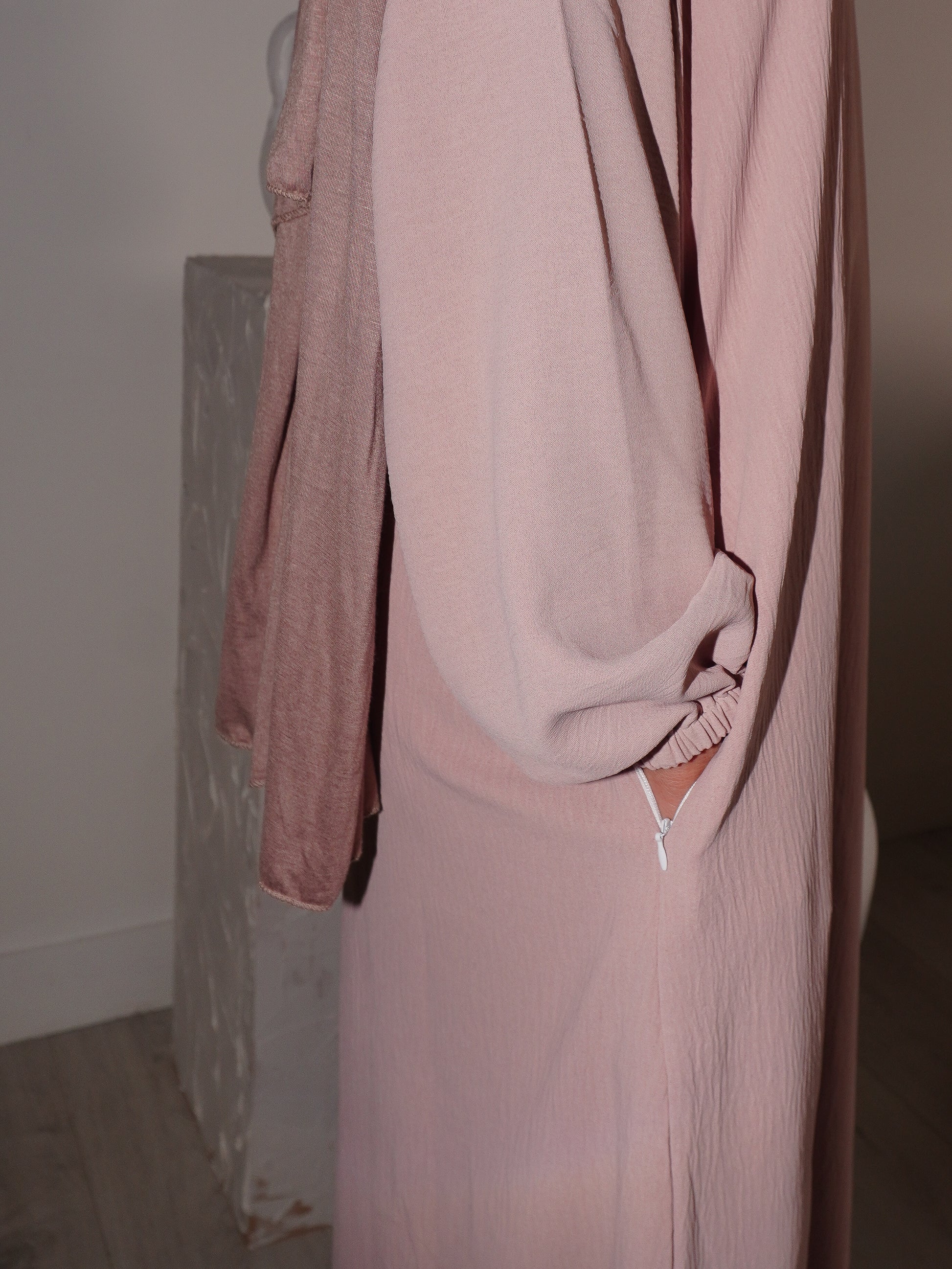 Effortless elegance for every day. Crafted from premium crepe fabric, this classic abaya offers a graceful drape, deep side pockets, and elastic-cuff sleeves for comfort and practicality. Modest, stylish, and versatile—perfect for any occasion. Includes a matching belt.